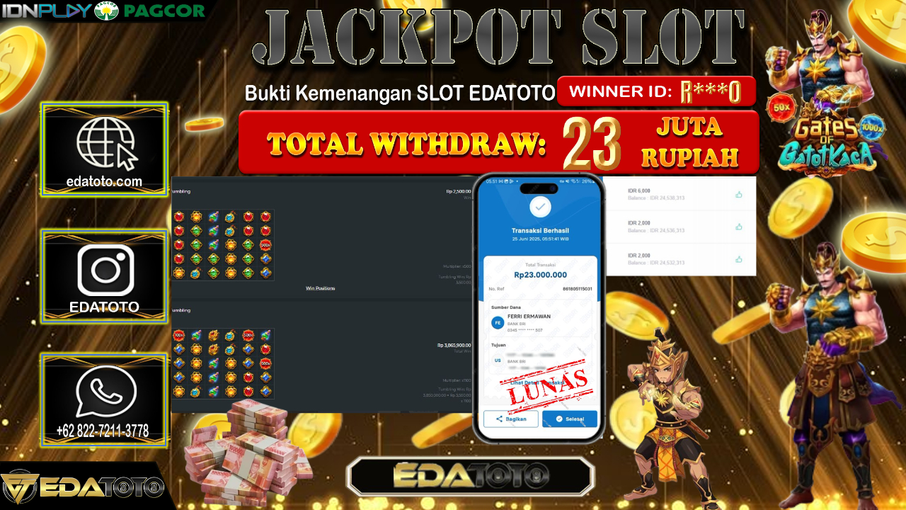 Selamat Kepada Pemilik user ID : R***0 Hari/Tanggal : Kamis/ 26, Juni 2025 Jackpot : Rp. 23.000.000 JT Permainan : Gates . . .