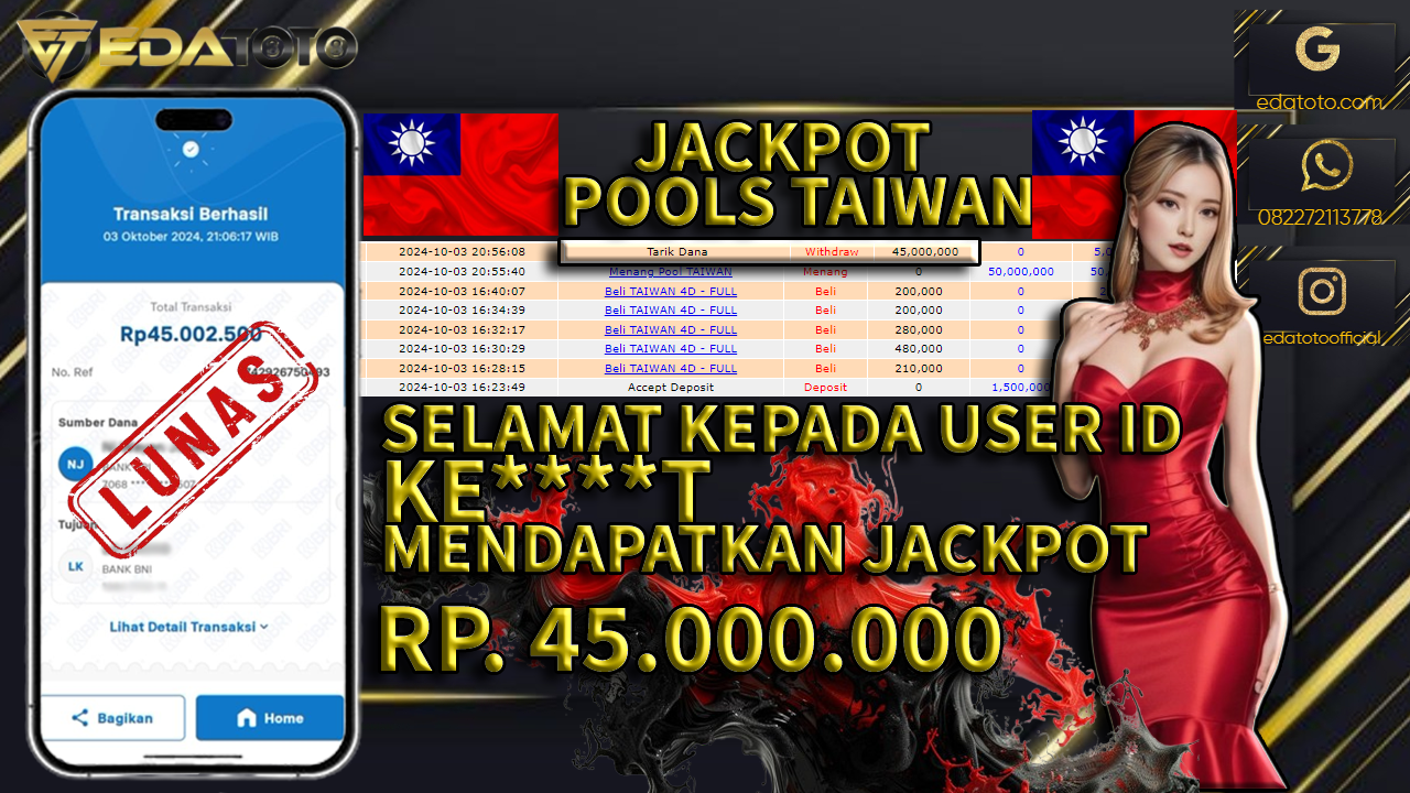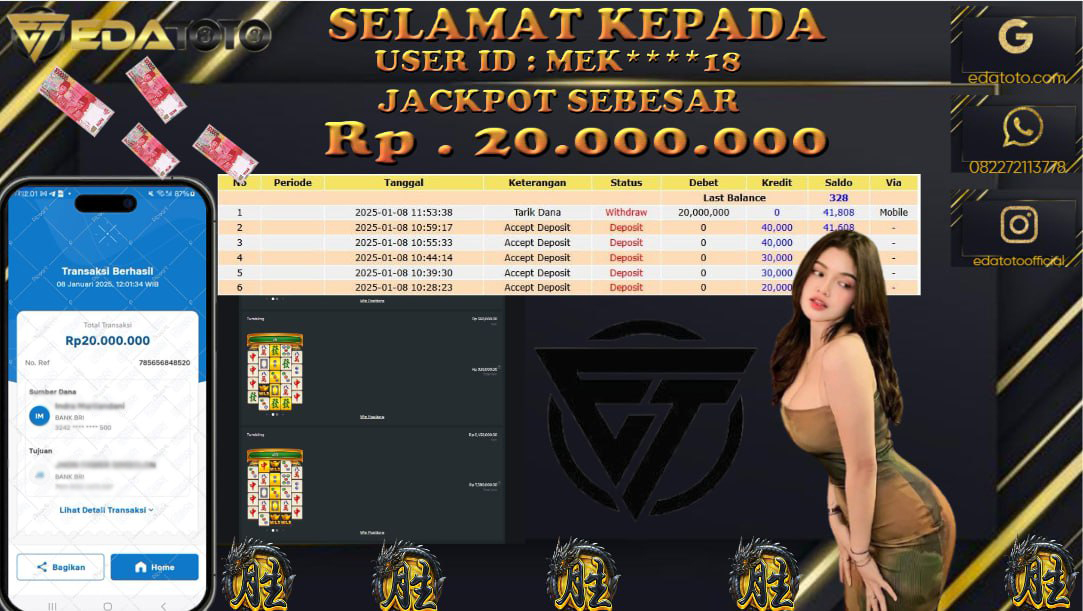 Selamat Kepada Pemilik user ID : MEK****18 Hari/Tanggal : KAMIS / 09 JANUARY 2025 Jackpot : Rp. . . .