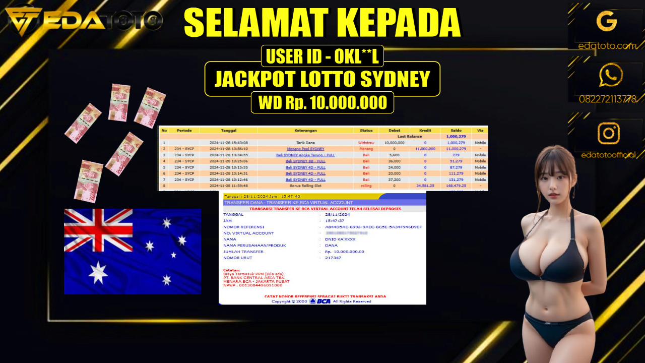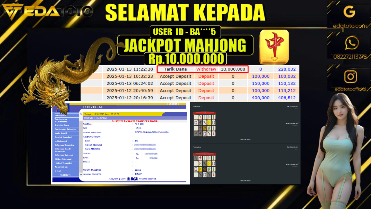 Selamat Kepada Pemilik user ID : OKL**L Hari/Tanggal : KAMIS / 09 JANUARY 2025 Jackpot : Rp. 10.000.000 JT Permainan . . .