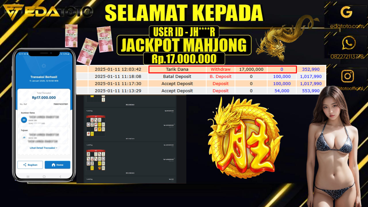 Selamat Kepada Pemilik user ID : YOH****O11 Hari/Tanggal : JUMAT/ 10 JANUARY 2025 Jackpot : Rp. 43.000.000 JT Permainan : . . .