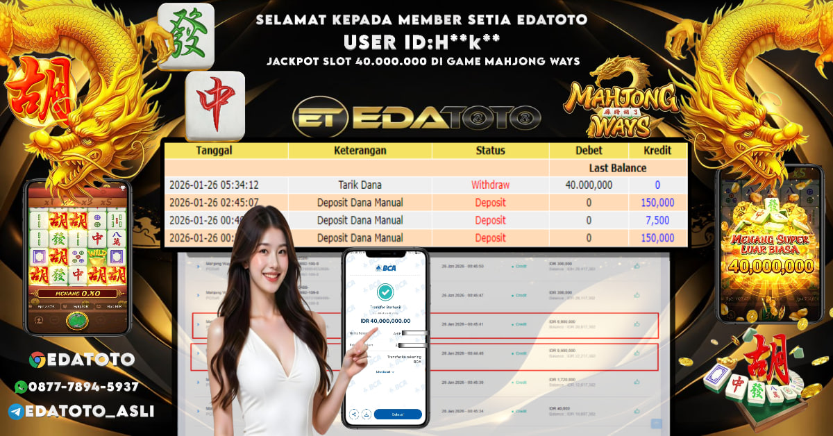 Selamat Kepada Pemilik user ID : H**k** Hari/Tanggal :senin/ 25 Januari 2026 Jackpot : Rp. 40,000,000 JT Withdraw : 40,000,000 . . .